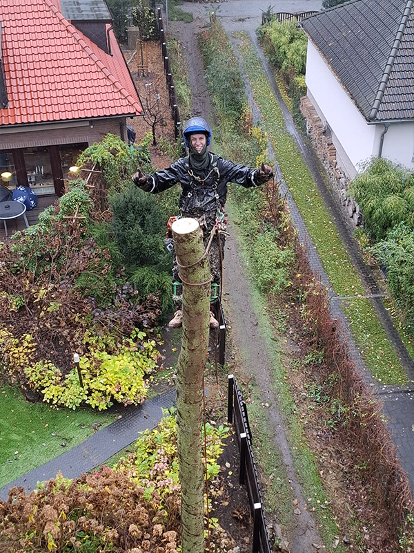 Was mich an der Baumpflege fasziniert, ist das Klettern. Genau das war es auch, was mich ursprünglich in diesen Beruf geführt hat. Doch mit der Zeit hat sich meine Begeisterung erweitert: Heute interessiere ich mich zunehmend für die Baumbiologie und die ökologischen Zusammenhänge, die das Leben eines Baumes bestimmen.